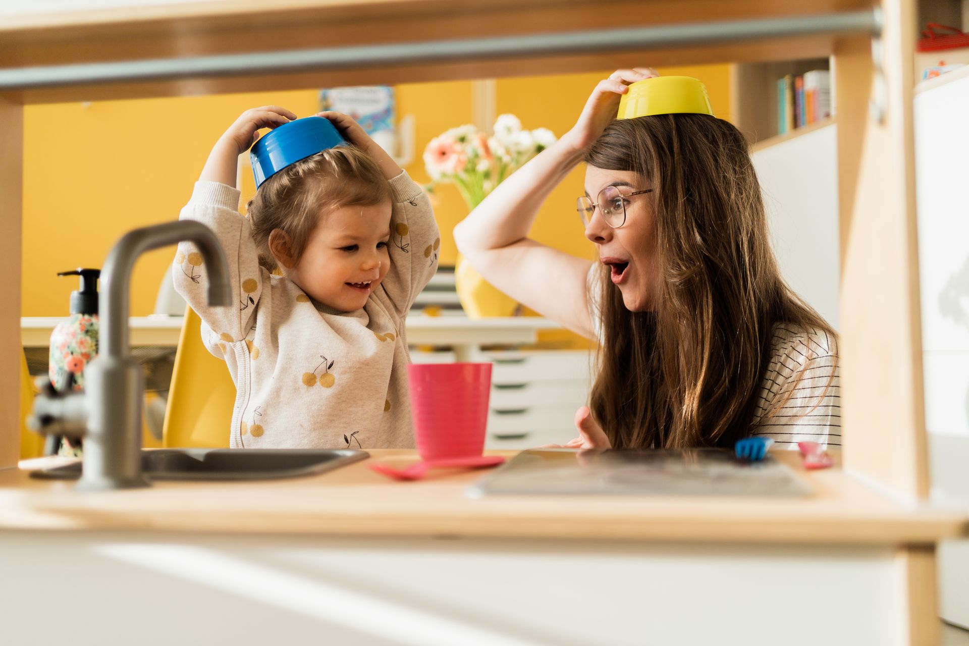 Als jij de controle over voorwerpen hebt, dan moet je kind het voorwerp aan jou vragen. Wil hij een blokkentoren bouwen? Hou dan alle blokken bij jou en geef er pas eentje als je kindje oogcontact maakt of wijst, afhankelijk van zijn niveau. Let op dat je kindje niet gefrustreerd geraakt en speel op een verbindende manier samen. Spelen en leren is het leukst als je peuter gelukkig is en er verbinding is tussen ouder en kind.